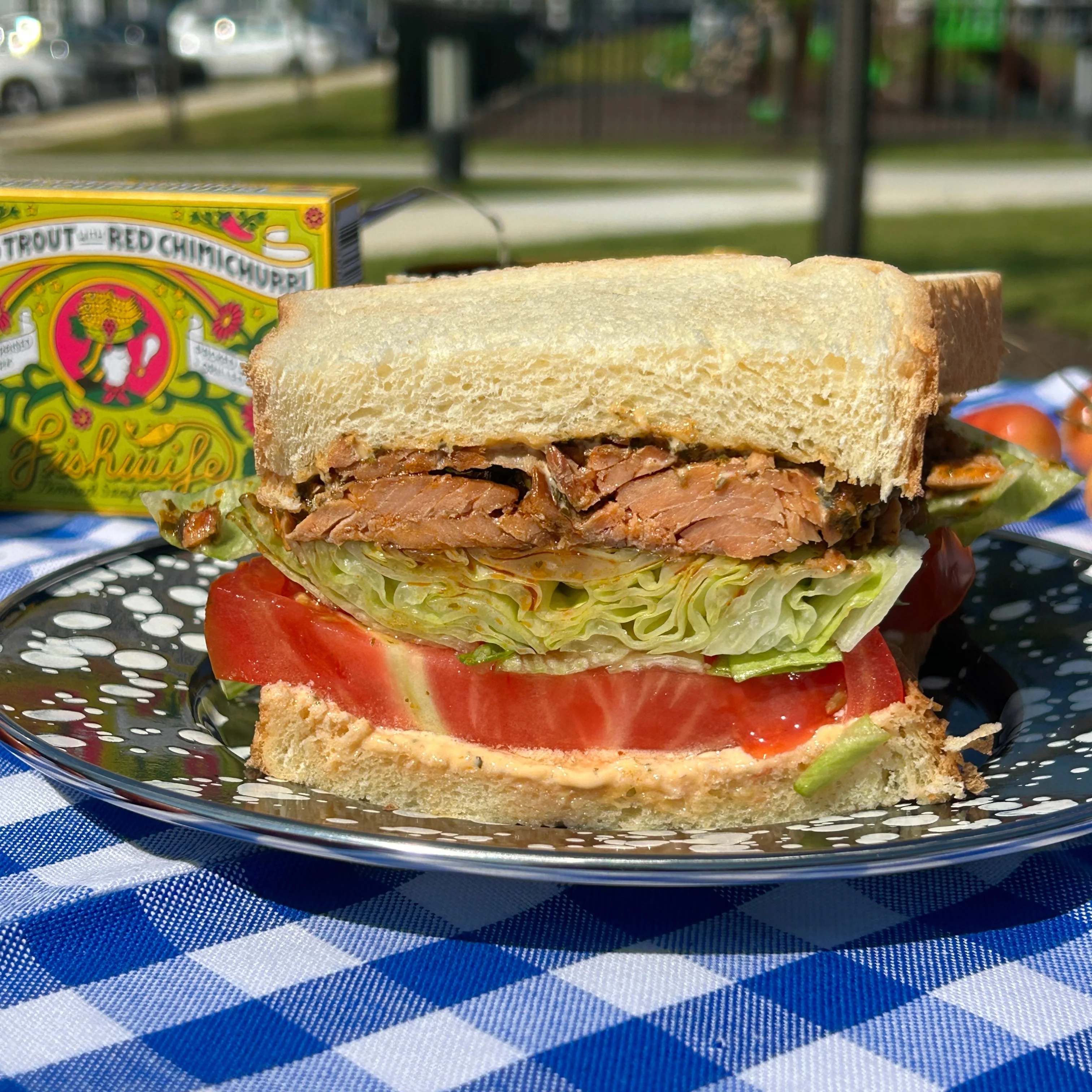 Meet your new pantry crush. We took our buttery, flaky Smoked Rainbow Trout and marinated it in a vibrant red chimichurri. Think tangy grilled red pepper, fresh herbs, savory garlic, and a bright splash of vinegar. The result is a tin that is zippy, herby, and impossible to stop eating.